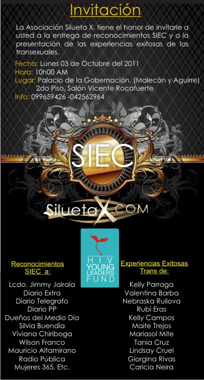 La Asociación Silueta X, tiene el honor de invitarle a usted a la entrega de reconocimientos SIEC y a la presentación de las experiencias exitosas de las transexuales.