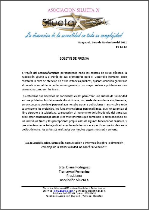 A través del acompañamiento personalizado hacia los centros de salud públicos, la Asociación Silueta X a través de sus promotoras para el Desarrollo Humano, pudo constatar la falta de atención en estas instancias públicas, quienes deberían garantizar el beneficio social de la población en general y con mayor énfasis a poblaciones más vulneradas como son las Trans.