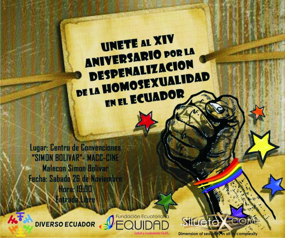 Equity Foundation, the Foundation Miscellaneous Ecuador and the Association Silueta X, has the honor to invite you to the Forum: XIV Anniversary of the Decriminalization of Homosexuality in Ecuador, where we have the presence of various authorities such as the Prefect of Guayas and well as important dignities related to the topic: