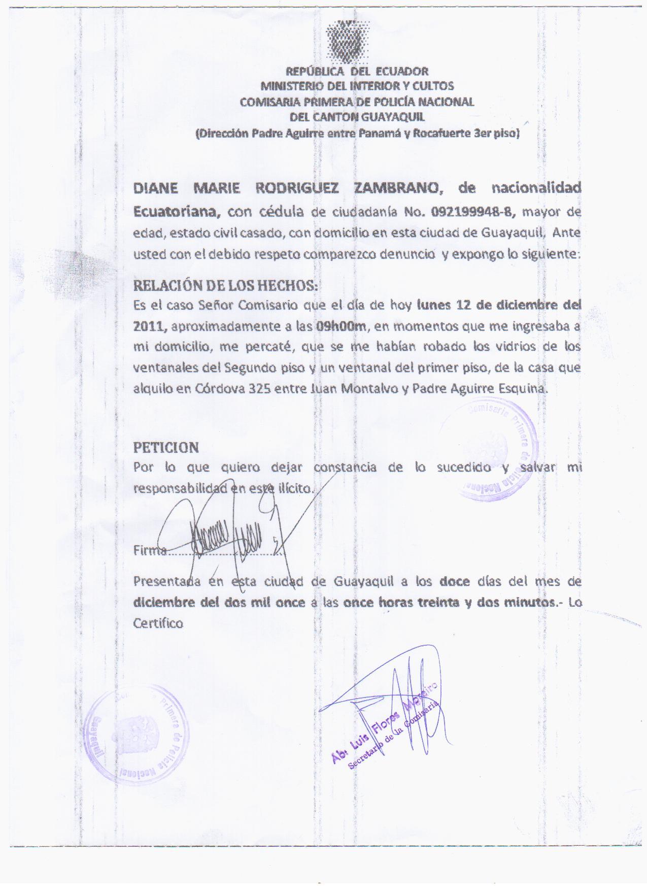 In this regard we ask police protection for our offices, especially late at night.Likewise, the suggestion that are renting offices in downtown area of Guayaquil, to proceed to our change.