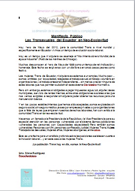 Today May 1, 2012 to the Trans community worldwide and specifically in Ecuador live in a time of social and labor exclusion.