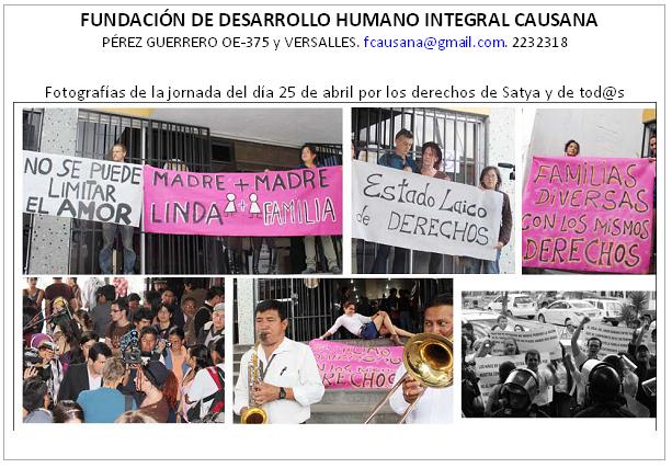 We also call on all social and civil organizations, national and international, academic, academics, organizations defending human rights and so on. join in the complaint and the various manifestations of repudiation against this serious situation of discrimination experienced by lesbian women in Ecuador.