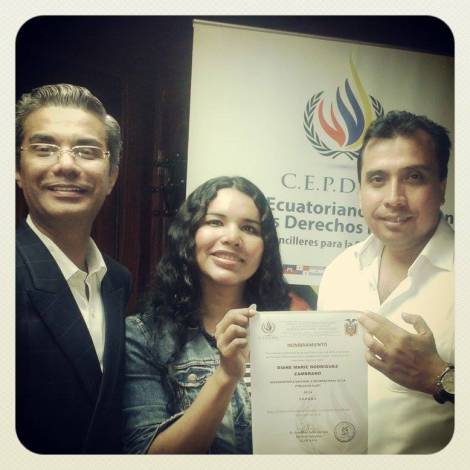 Nombramiento del Comité permanente Ecuatoriano de los derechos humanos como representante Nacional E internacional de la población GLBTI de la C.E.P.D.H.U a la Srta. Diane Rodriguez Zambrano presidenta de la Asociación Silueta X.