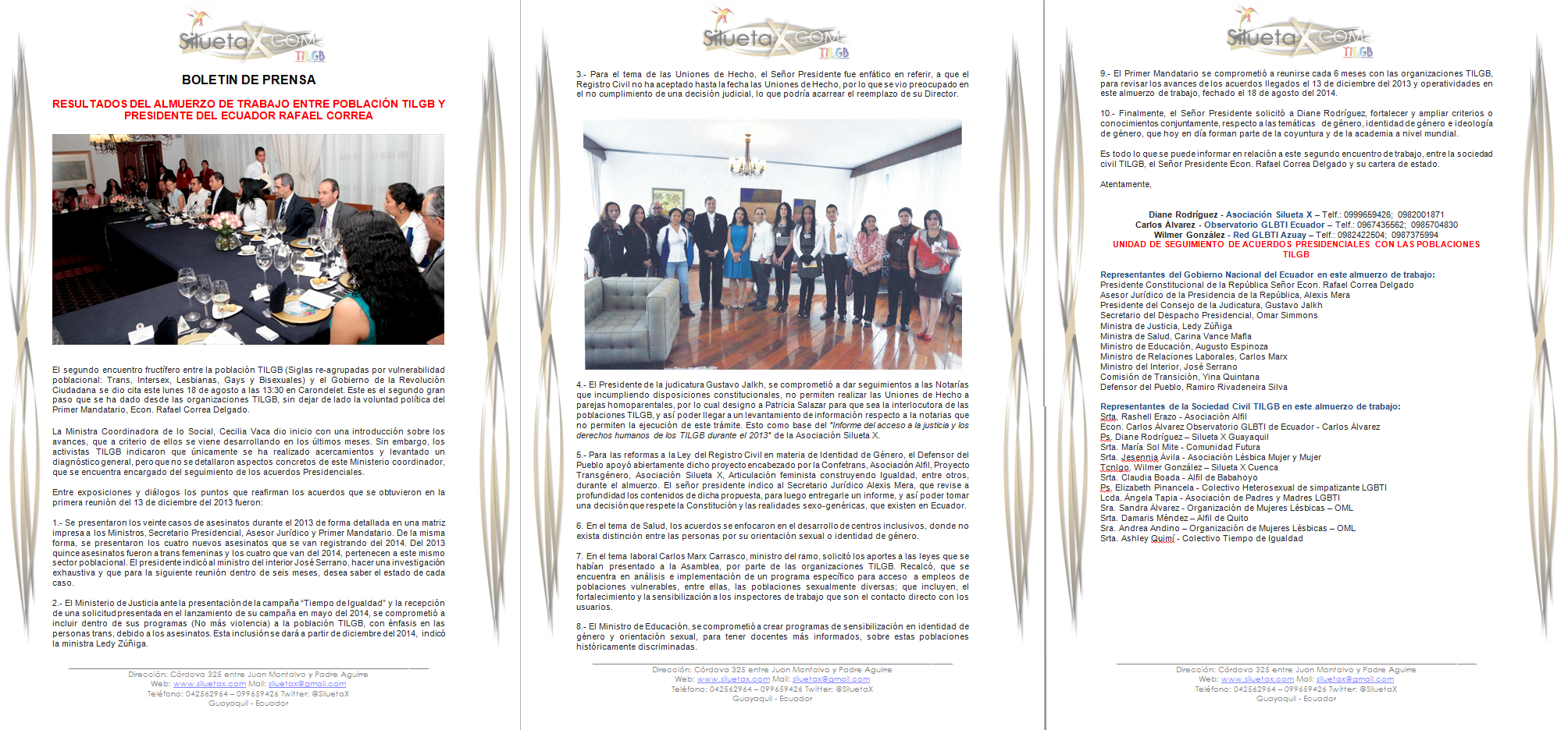 Es todo lo que se puede informar en relación a este segundo encuentro de trabajo, entre la sociedad civil TILGB, el Señor Presidente Econ. Rafael Correa Delgado y su cartera de estado.