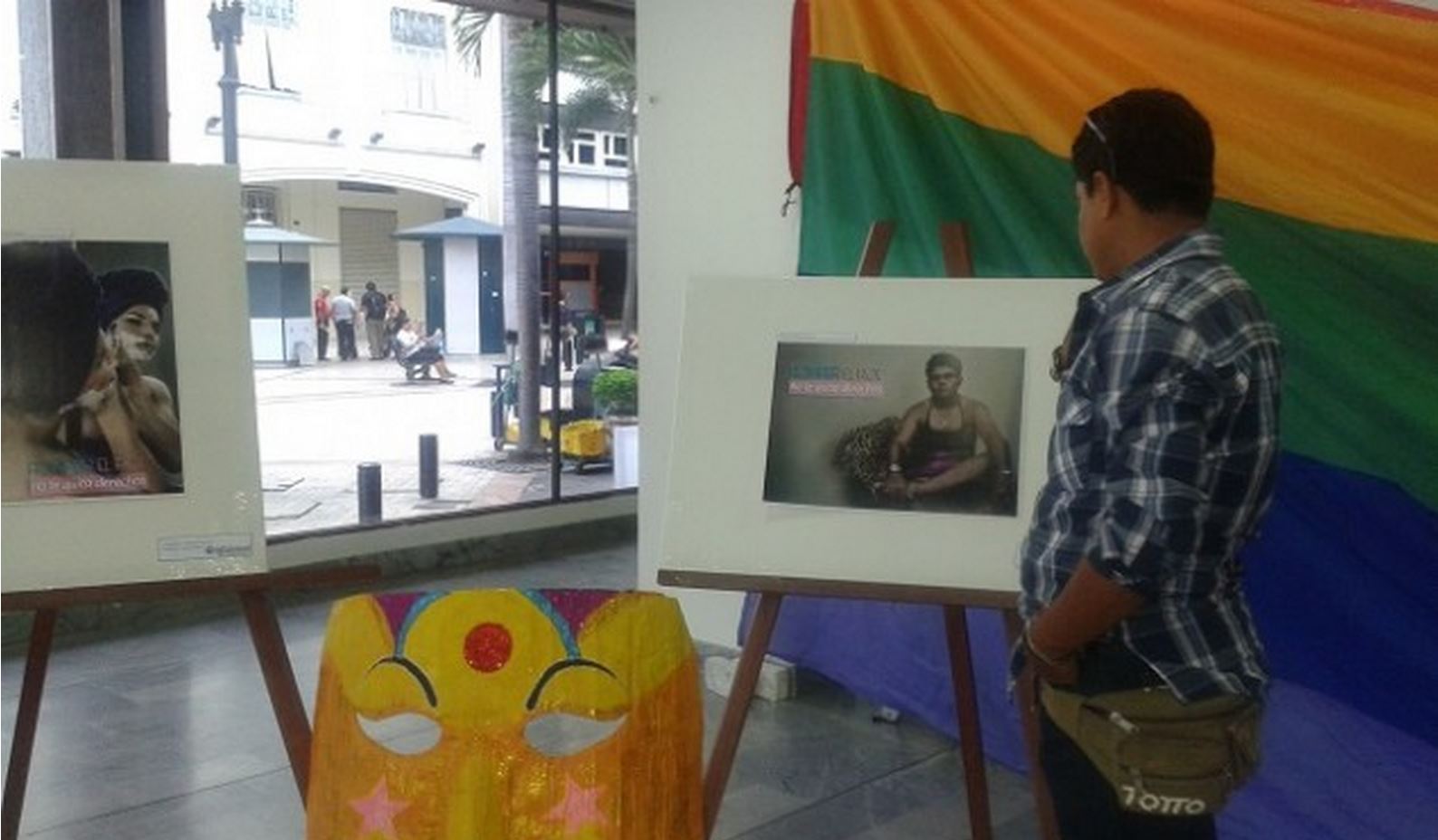 En una de las salas del Museo Nahím Isaías, estaban expuestas varias fotografías de transexuales en una actividad. Una de ellas mostraba a Andrés Torres, quien se define como transmasculino, luciendo un vestido, pero sin perder su rudeza.