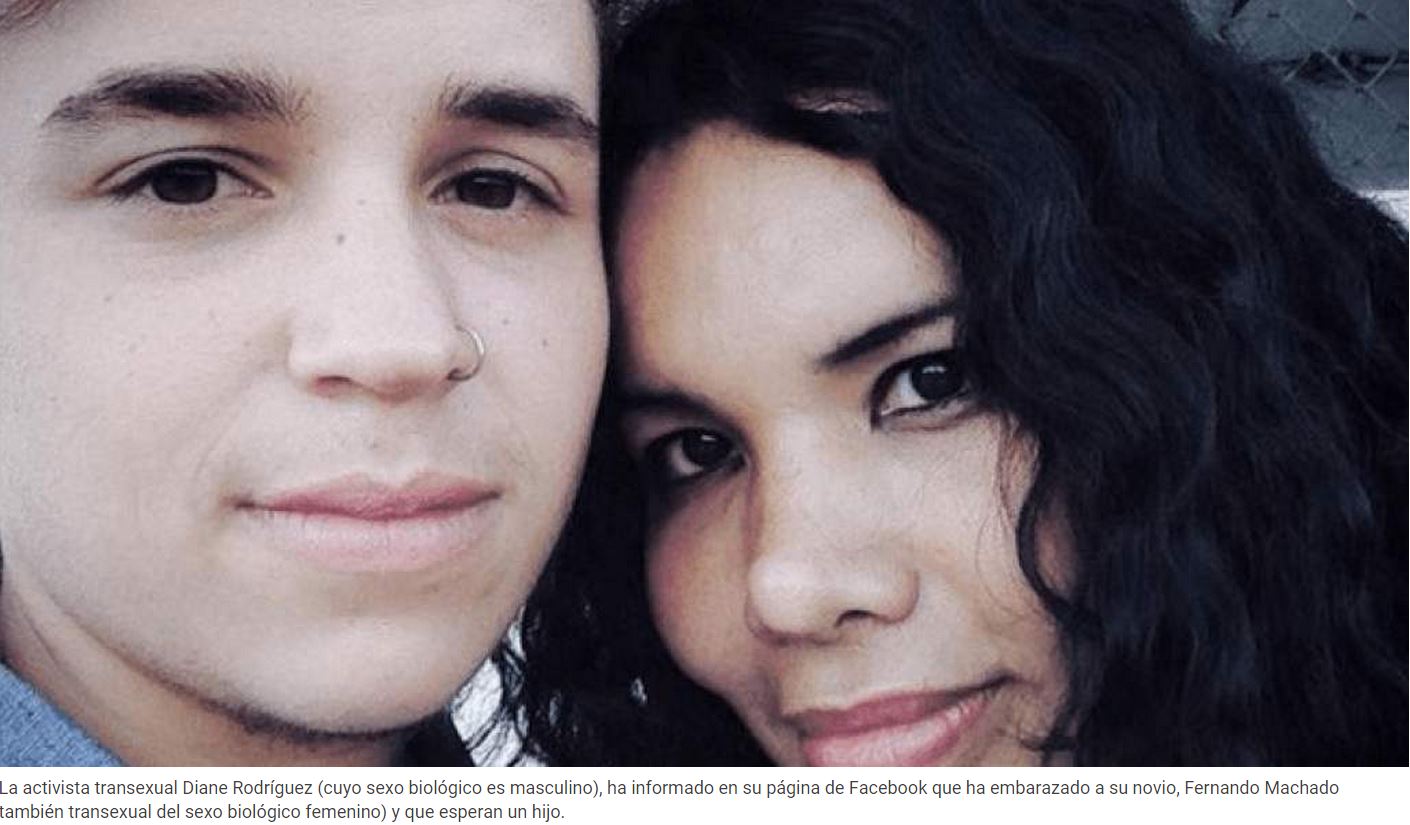 La activista transexual Diane Rodríguez (cuyo sexo biológico es masculino), ha informado en su página de Facebook que ha embarazado a su novio, Fernando Machado también transexual del sexo biológico femenino) y que esperan un hijo.