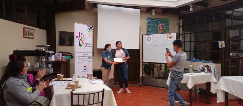 «Me convertí en embajadora de la campaña Cuenca No Discrimina gestada por la Fundación Verde Equilibrante de Cuenca, la cual acepte con mucho cariño y respeto. También aporté a su iniciativa de empoderamiento de nuevos liderazgos en Cuenca, con mis conocimientos y el bagaje institucional de la Asociación Silueta X, sobre Denuncias LGBT.