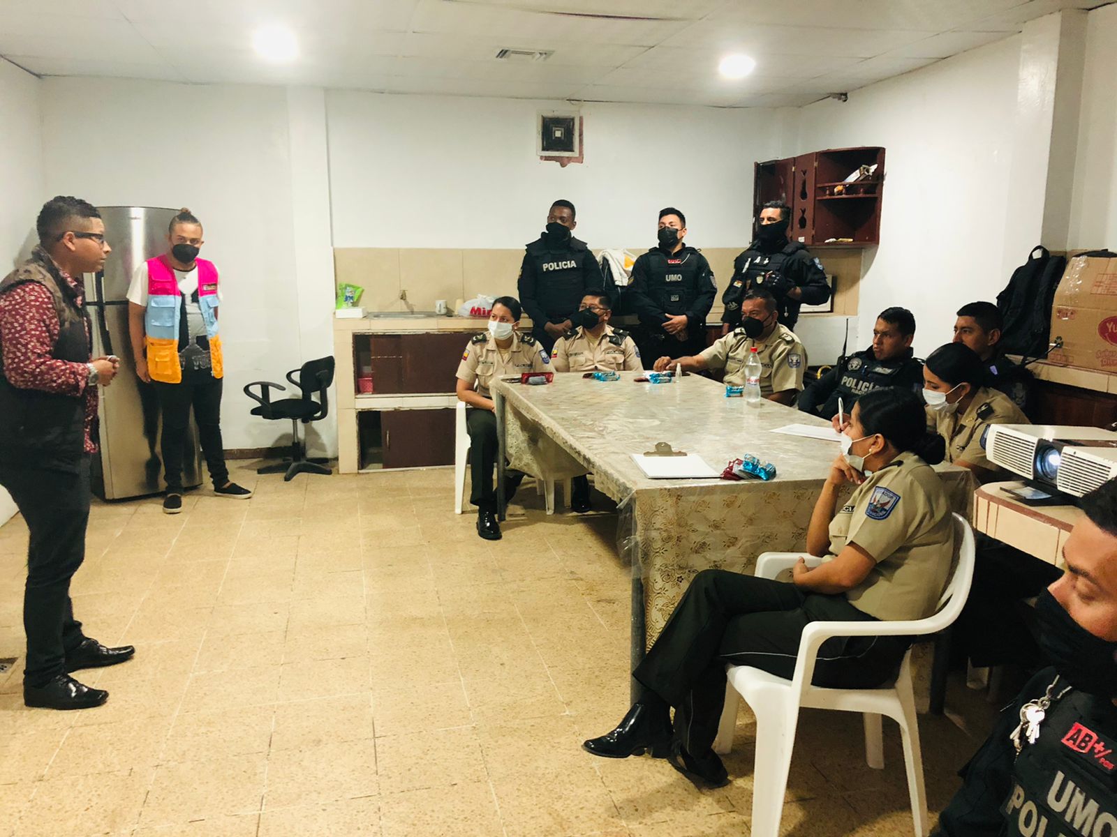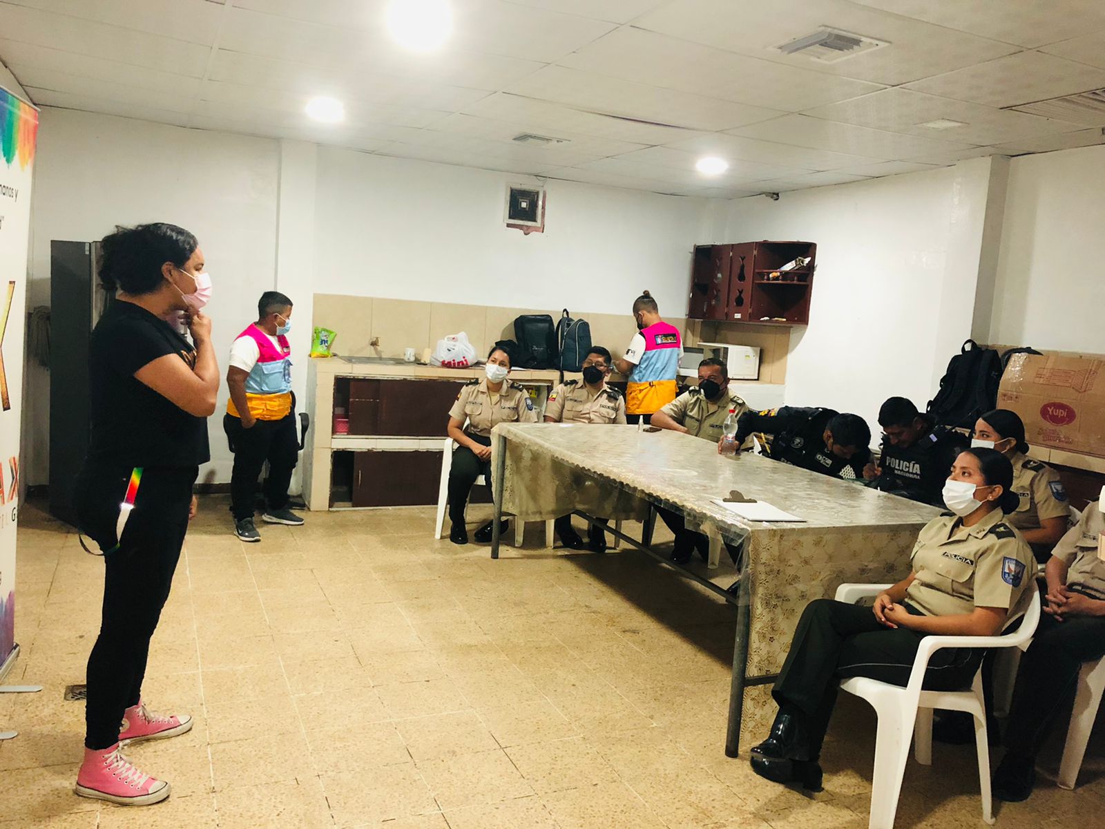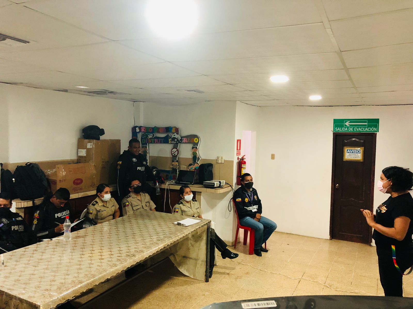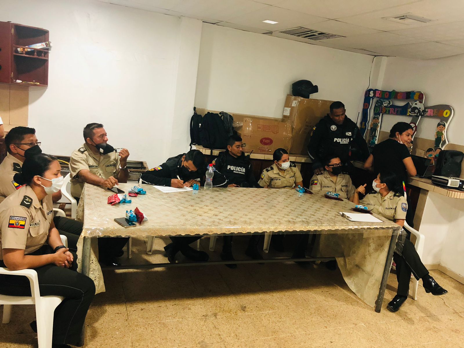 Iniciamos en el UPC de Posorja provincia del Guayas. El UPC no cuenta con un auditorio sin embargo nos supimos acomodar al espacio que fue coordinado en conjunto con el cabo José Guadalupe.
