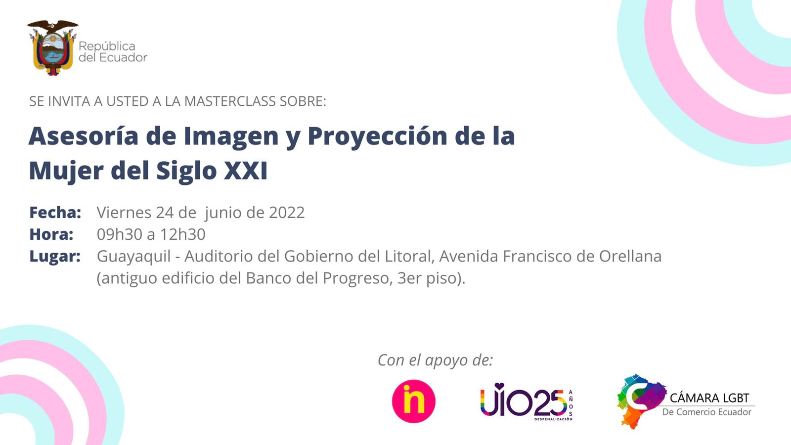 MASTERCLASS – Asesoría de Imagen y Proyección de la mujer del Siglo XXI Publicado por Moderador el 20 junio, 2022 Comparte esto: Haz clic para compartir en X (Se abre en una ventana nueva) X Haz clic para compartir en Facebook (Se abre en una ventana nueva) Facebook Haz clic para compartir en WhatsApp (Se abre en una ventana nueva) WhatsApp Haz clic para compartir en Telegram (Se abre en una ventana nueva) Telegram