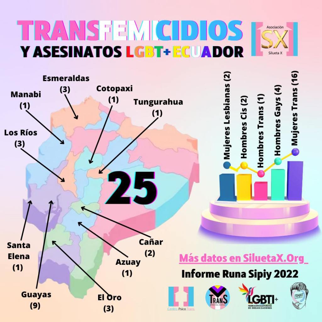 Mapa de Transfemicidios y Asesinatos LGBT+ 2022, realizado por la Asociación Silueta X y organizaciones aliadas a través del Informe Runa Sipiy, que levantamos desde el año 2012 a nivel nacional. Este 2022, cumplimos diez años de consolidar información nacional sobre nuestras poblaciones.