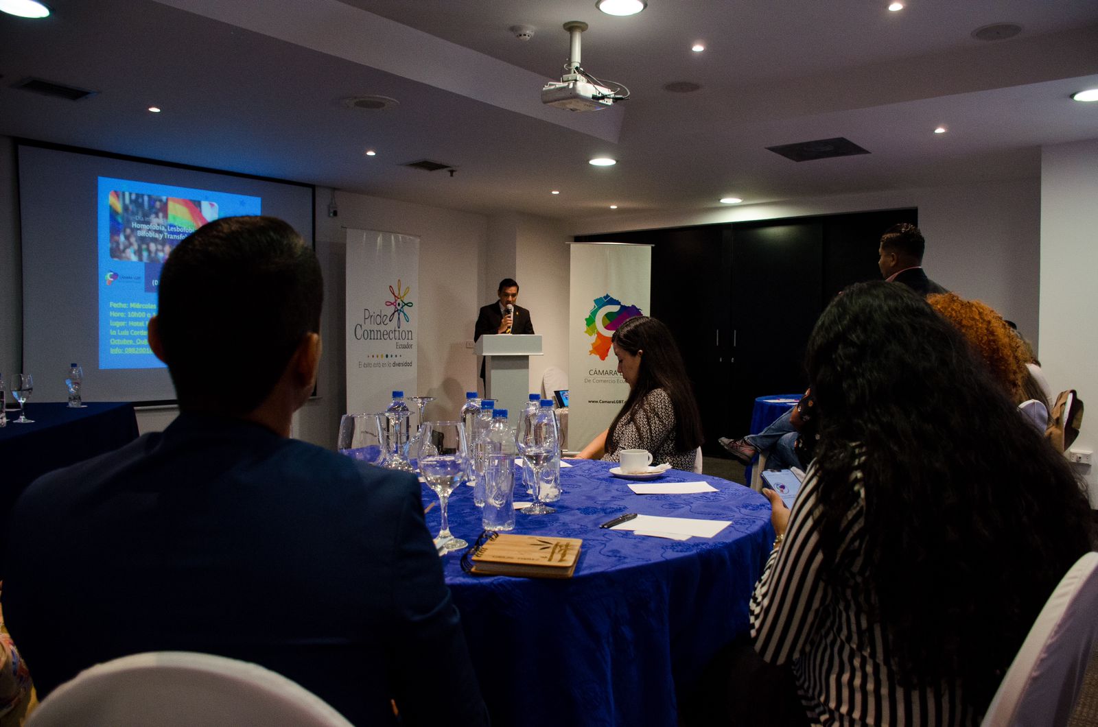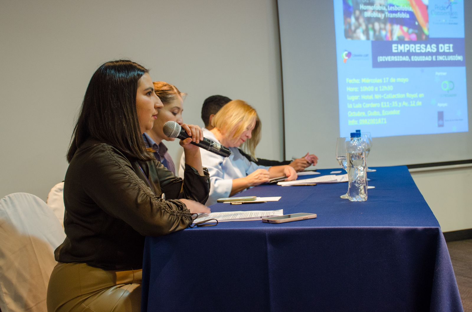 En el espacio se abrió un conversatorio con las empresas OCP-Ecuador con Esteban Silva, Reponsible Travel con Flor Gaona y Entregas Ecuador (Fedex) con Verónica Lasso, indicaron que: En el año 2012, la Organización Internacional del Trabajo, (OIT) puso en marcha el programa PRIDE (siglas en inglés correspondientes a Identidad de género y orientación sexual: promoción de derechos, diversidad e igualdad en el mundo laboral). Además, se les preguntó sobre sus procesos internos en caso de homofobia, transfobia. Consecuentemente sobre sus programas internos y como le resulta de saludable al clima empresarial ser inclusivos.