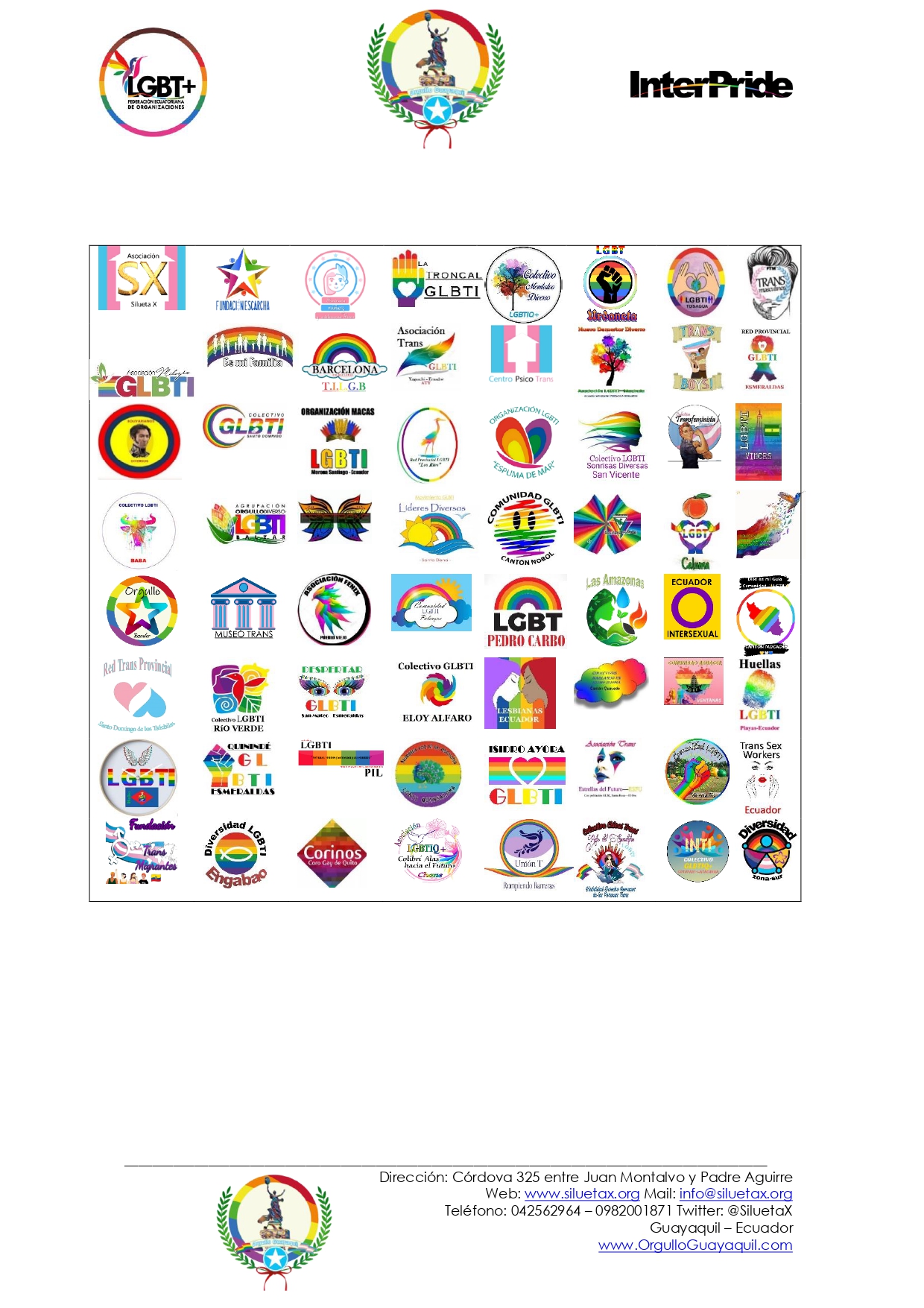 Las organizaciones que conformamos la gestión, coordinación y el Comité oficial del Orgullo Guayaquil informan a los/las/les guayaquileños/as/es que para poder desarrollar de una forma armónica y bajo los estándares en derechos, reconocidos en la Constitución de a República del Ecuador, entre otros, nos permitimos comunicar los siguiente.