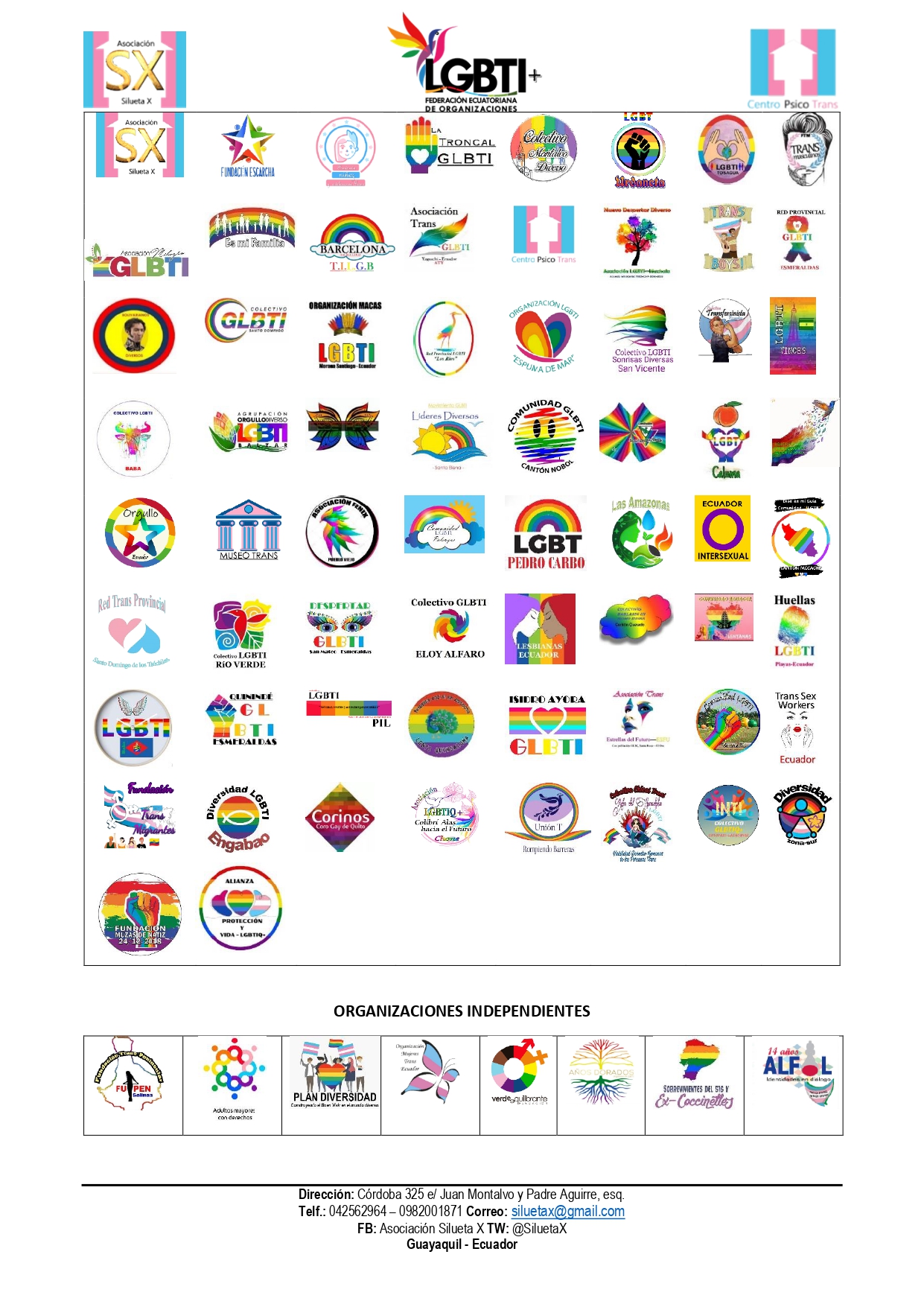 Contacto: info@FederacionLGBT.com, SiluetaX@gmail.com