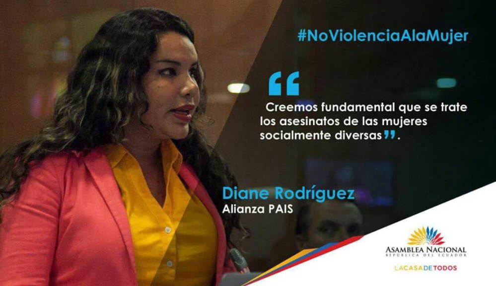 Diane Marie Rodríguez Zambrano, es la primera persona transexual/ transgenero que es elegida para un cargo de elección popular en Ecuador, por el movimiento Alianza PAÍS. Conoce más de ella: Curriculum de Diane Rodríguez